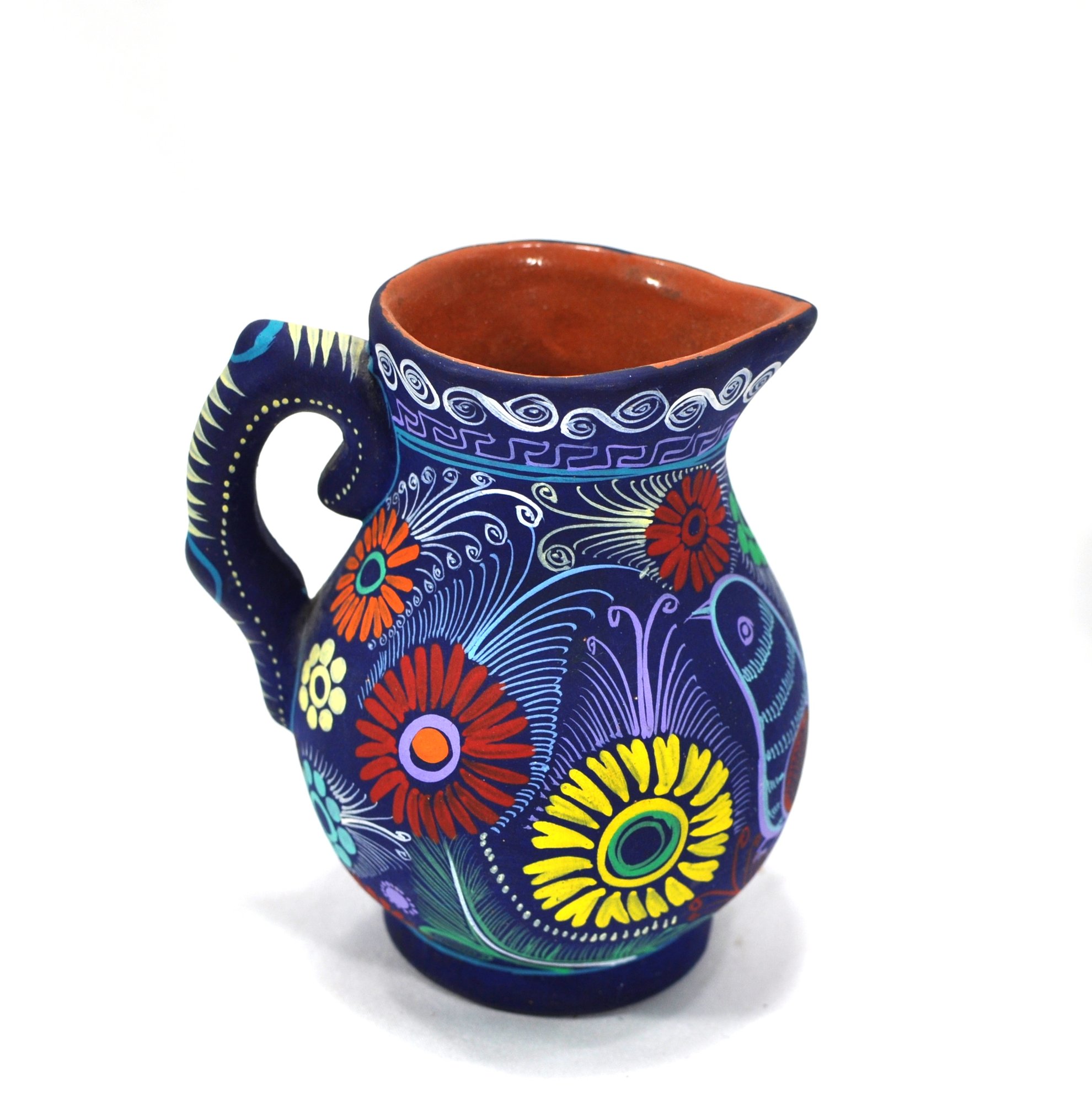 Beautiful small Mexican Xalitla hand painted ceramic pitcher.