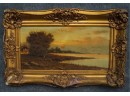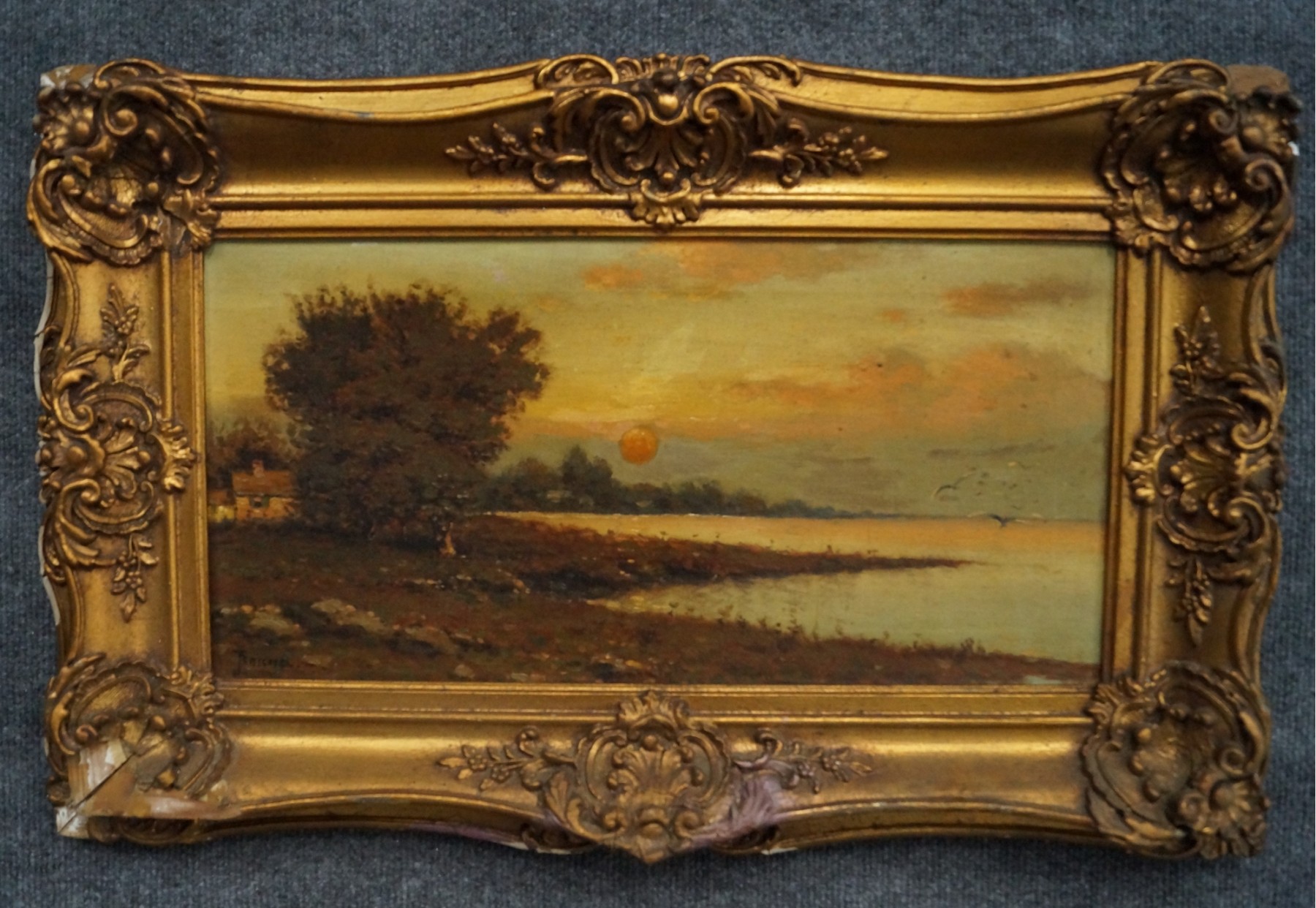 Listed is a lovely oil on canvas landscape by listed artist J. Brichel. Late 19th or early 20th century. Signed lower left "J. Brichel". It is in good condition with some foxing. The wood and plaster frame has condition issues. Measures 17"h x 27"w. See photos.