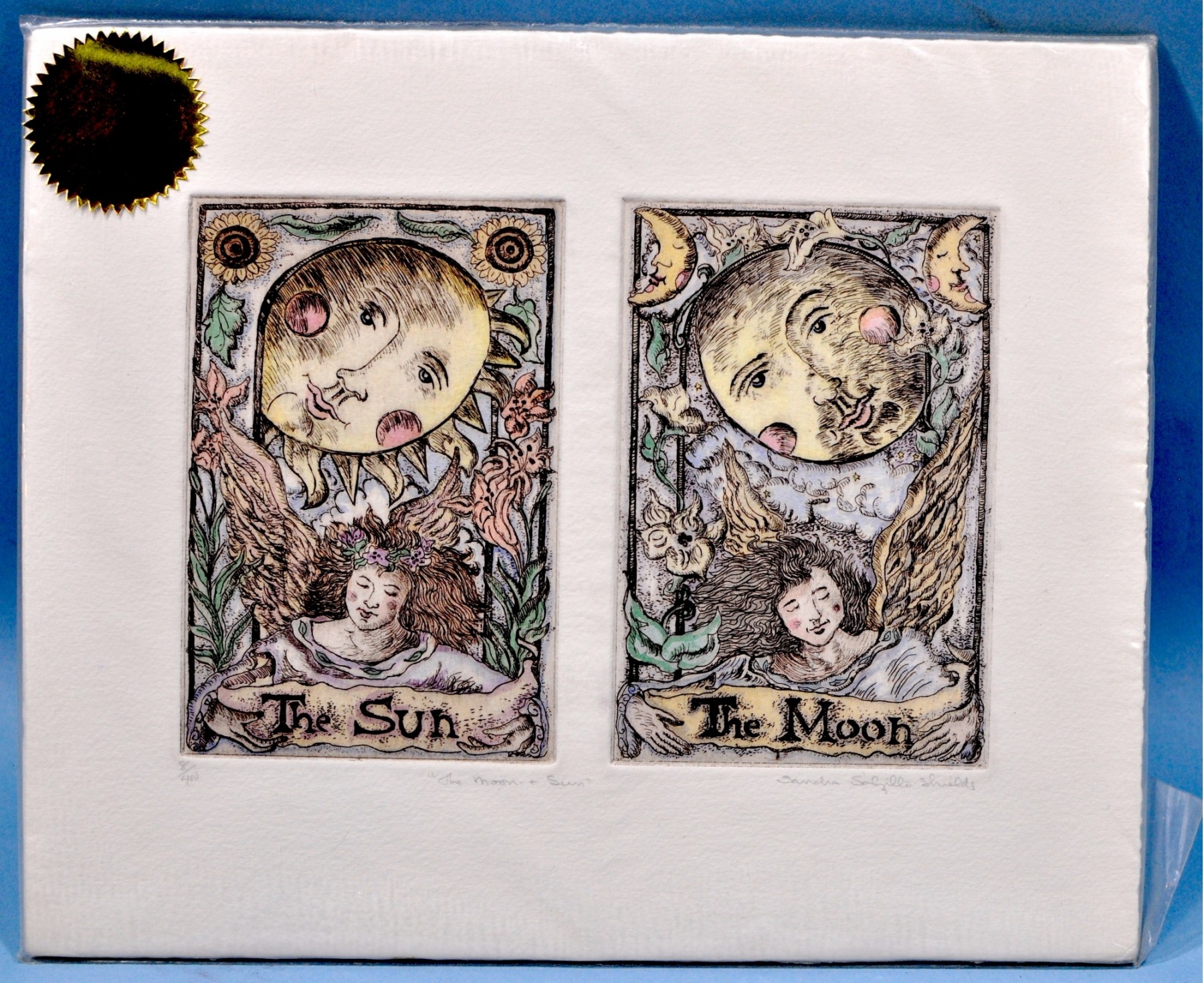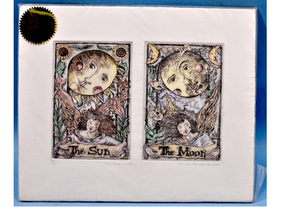 Original Sandra Salzillo " The Sun The Moon " Etching Artist Signed With COA