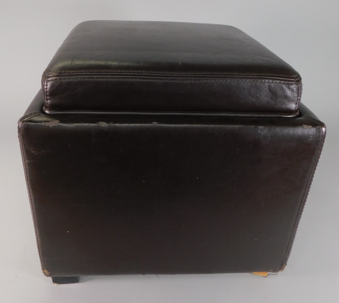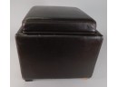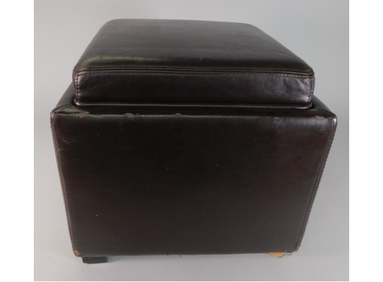 Brown ottoman. 17 inches around. The top lifts out for storage. It has some wear, as shown. Otherwise, it is a nice, sturdy piece.