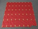 Two pieces of red cotton jacquard fabric with yellow roses measure 1.4 yards long and 4.5 yards long x 56" wide