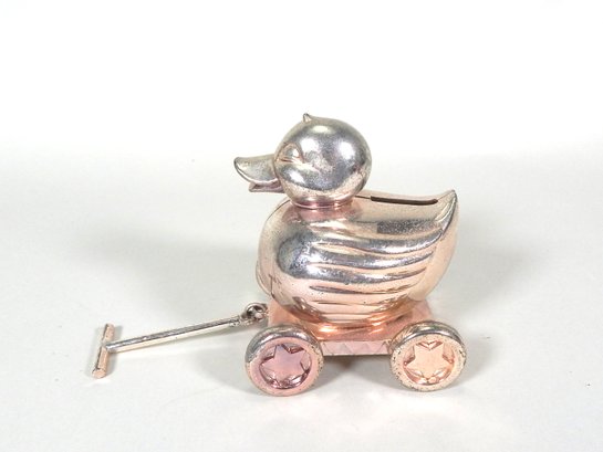 Reed & Barton Silver Plated Rubber Ducky Pull Toy Bank Just Ducky Baby Gift