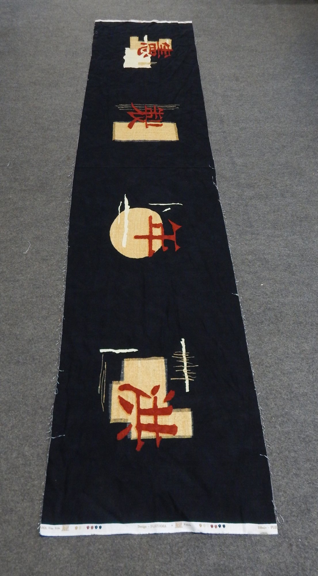 Remnant black cotton fabric with Japanese imagery