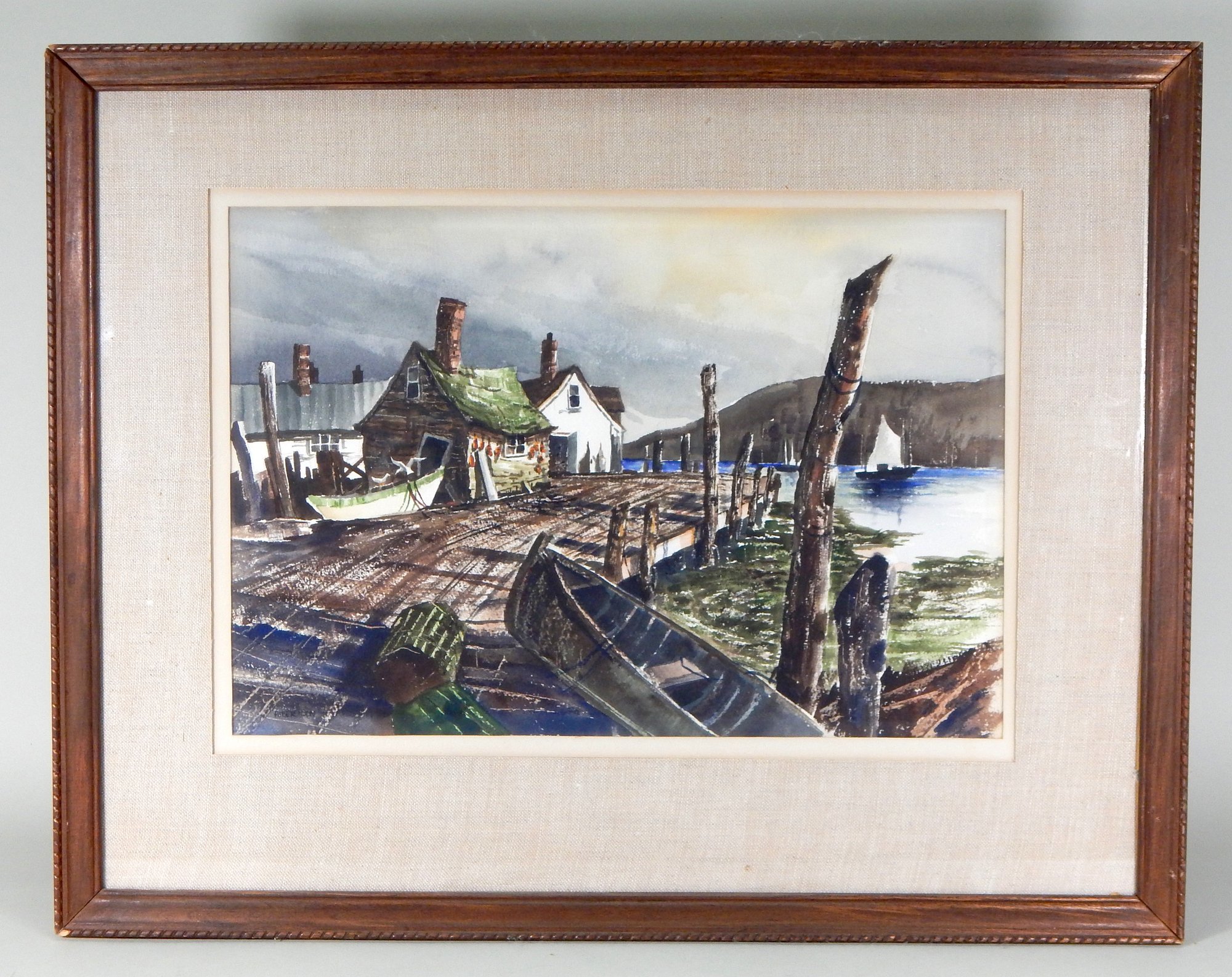 Vintage watercolor signed lower left, framed under glass.