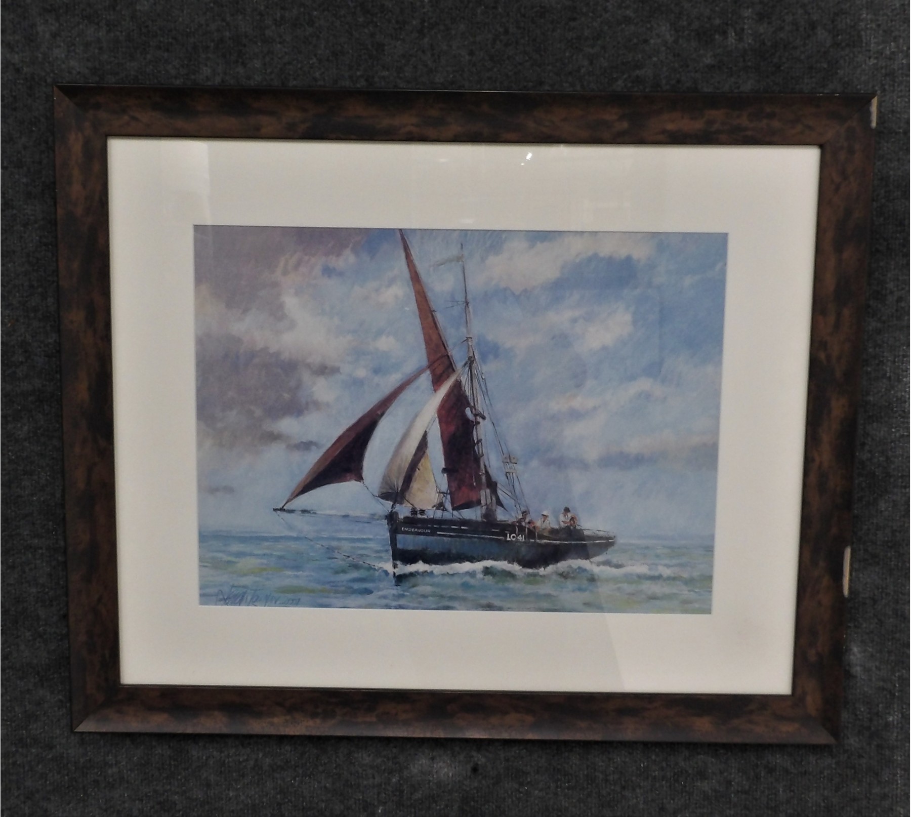 Listed is a framed print of The Endeavour - 29"w x 24"h with frame; 19" x 14" just the print. The composite frame is chipped in 2 places. The work is in very good condition. The pamphlet is enclosed in a pocket on the back of the frame. See photos for details.