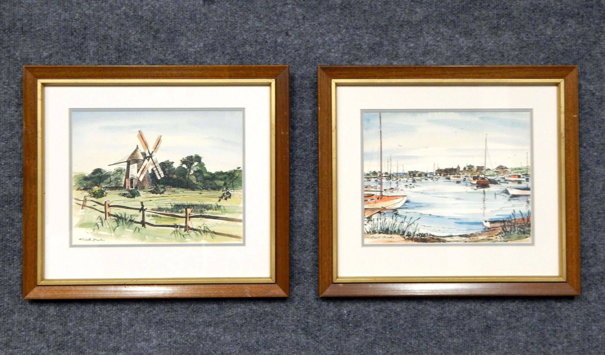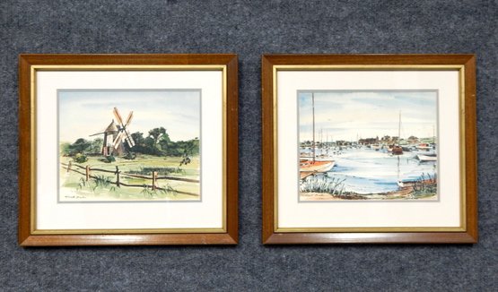 Pair of framed watercolors by Massachusetts artist Robert Brooks (1922 - 1992).