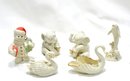 Group of porcelain figurines, animals and snowman.