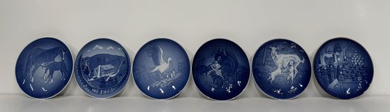 Set of six Royal Copenhagen plates, each depicting a different scene.
