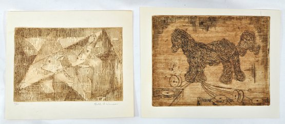 Authentic copper plate etchings by Ruth Winsor, titled "Deer Memories" and "Poodle".