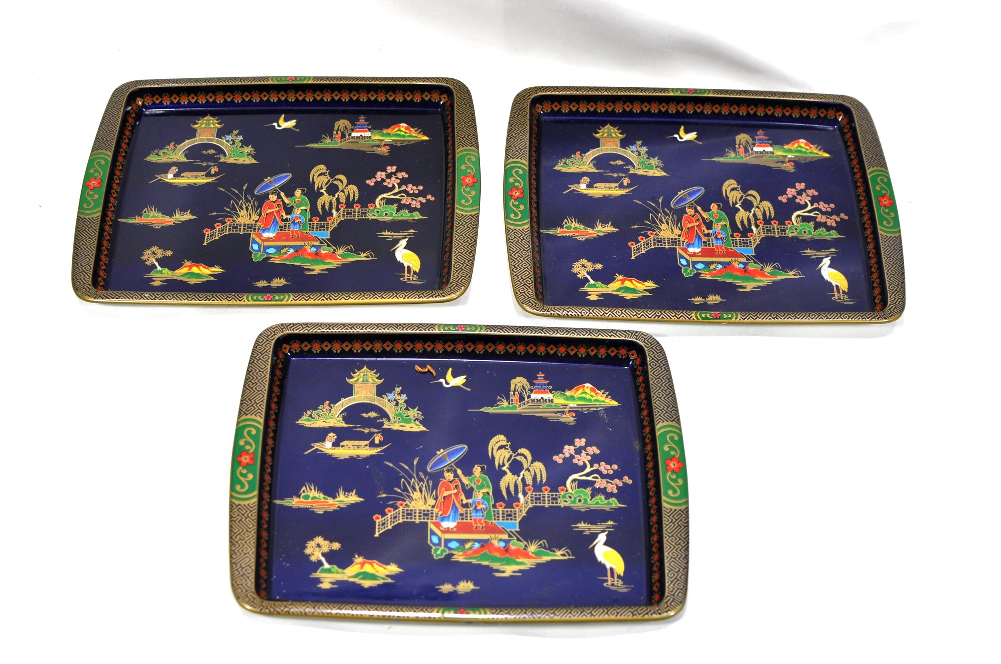 Daher Decorated Ware England Decorative Square Tray Plate Oriental Asian Design.