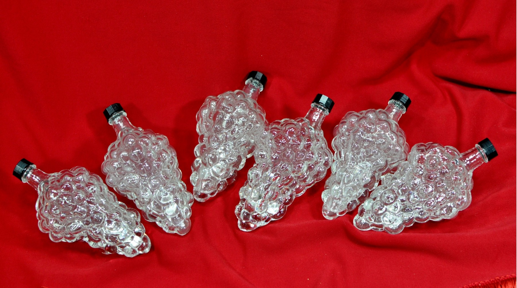 Decorative glass wine bottles in the form of grape cluster.