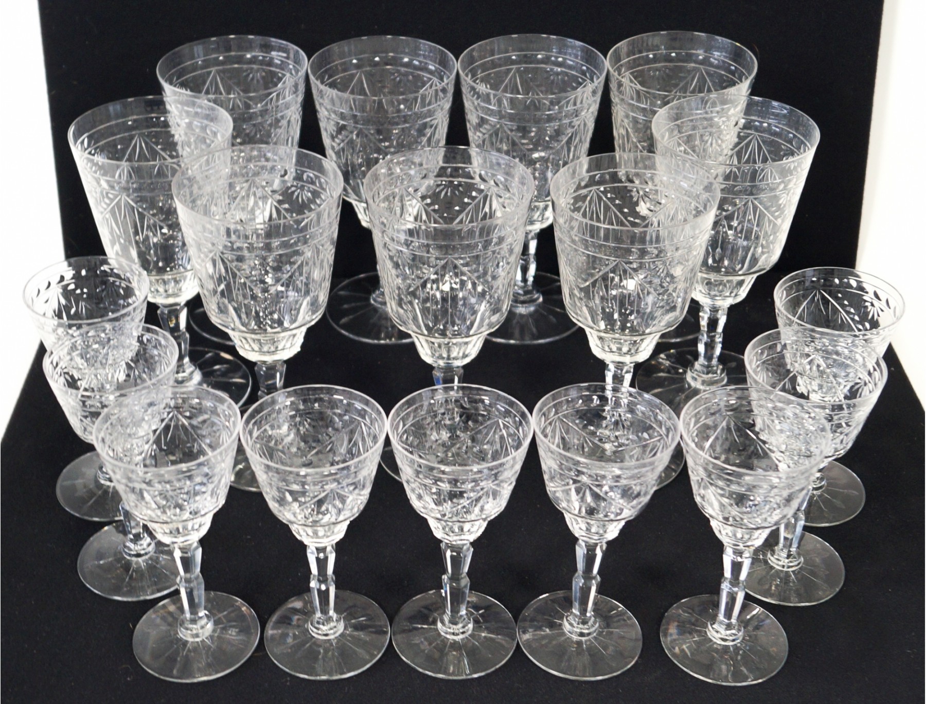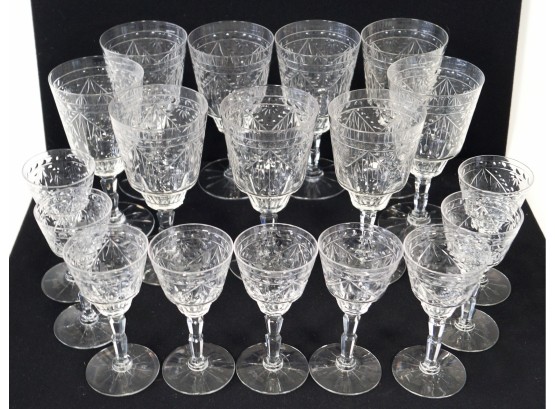 This is a gorgeous set of stemware with intricate cut-glass patterns.