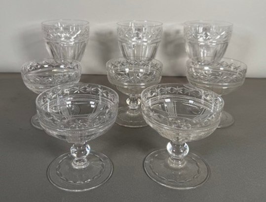 Set of eight cut crystal glasses. The tallest glass measures approximately 5.5 inches in height.