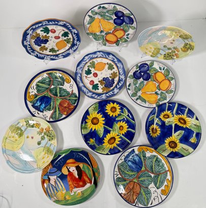 Set of eleven Nantucket Home decorative plates. Assorted designs including sunflowers, fruit, and floral patterns. Each plate measures approximately 11 inches in diameter.