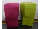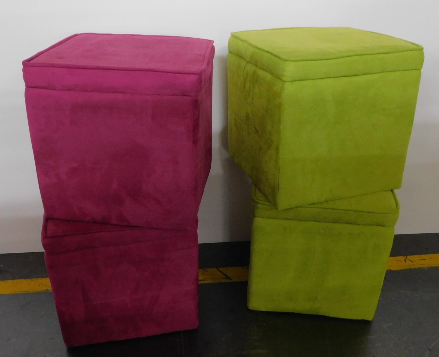 Set of 4 ottomans. The tops come off for storage. Bright neon colors. Green and magenta.