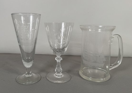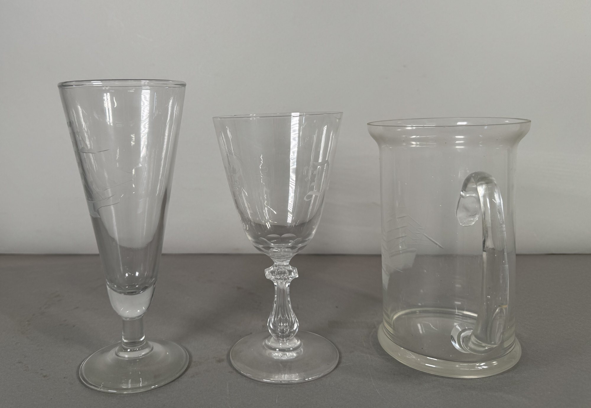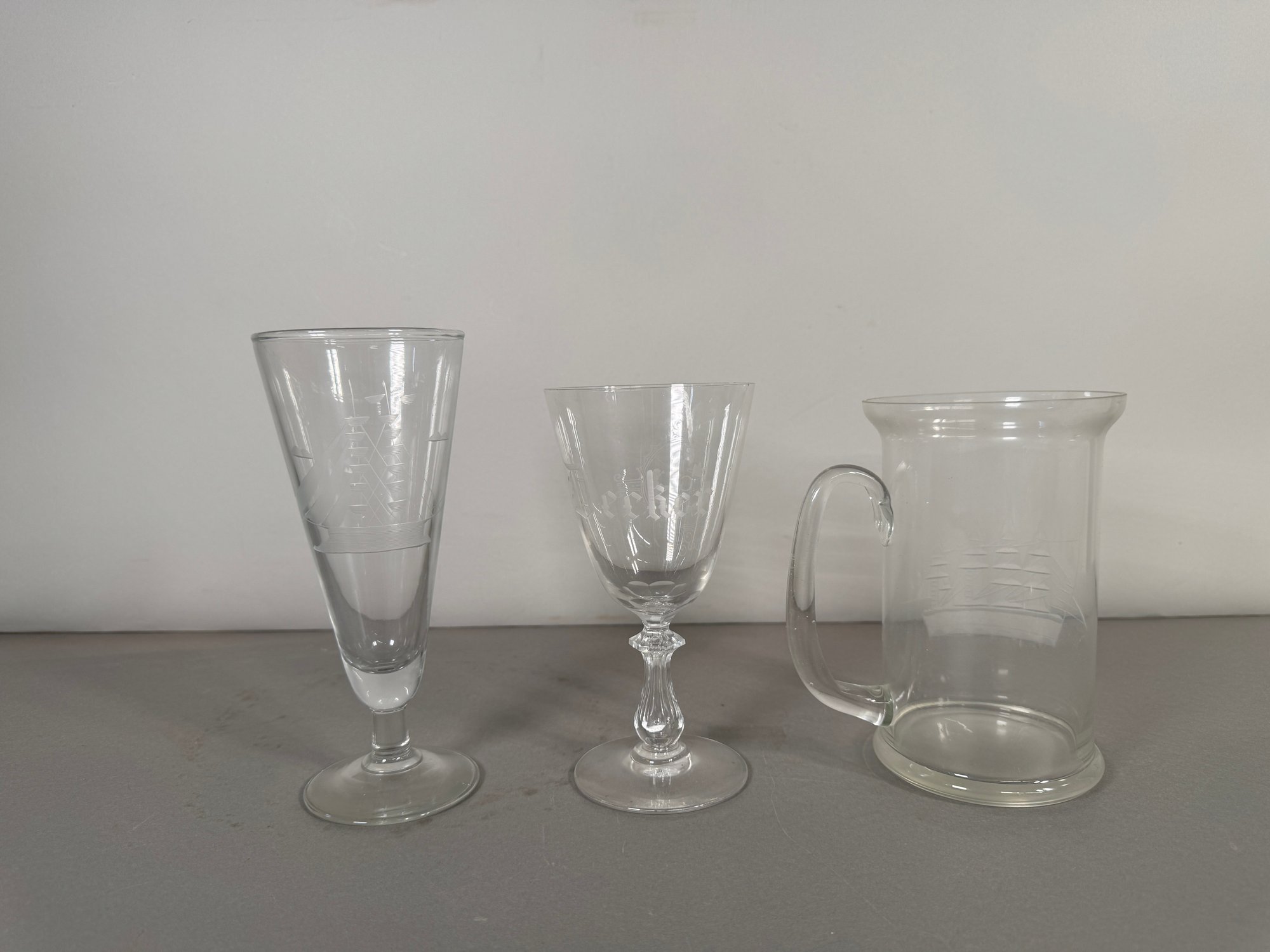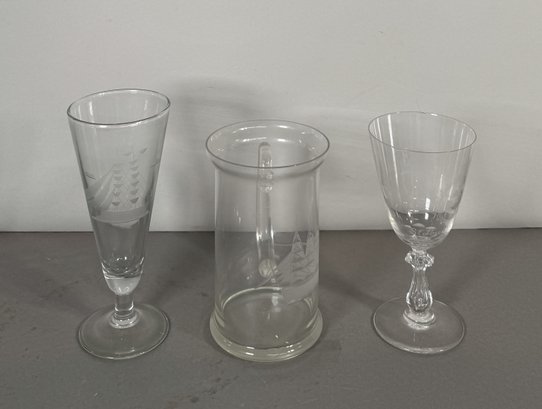 This set includes three clear glassware items: