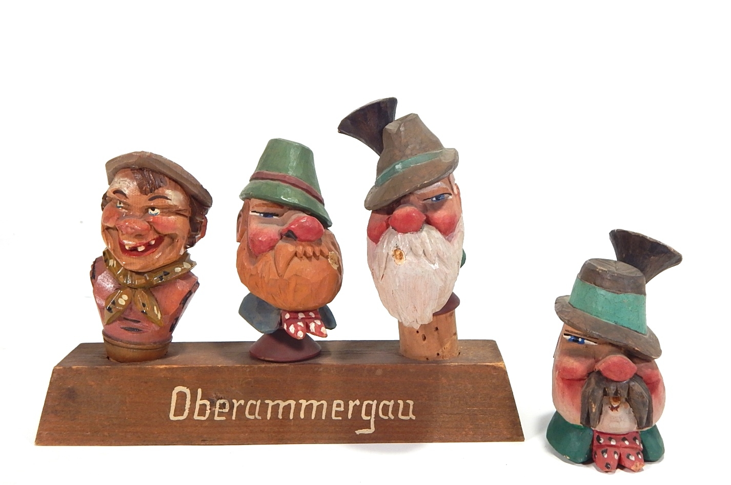 Set of original German Oberammergau bottle stoppers, hand carved and painted.