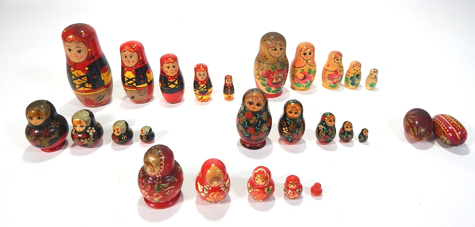 Vintage Russian wood nesting dolls and eggs.