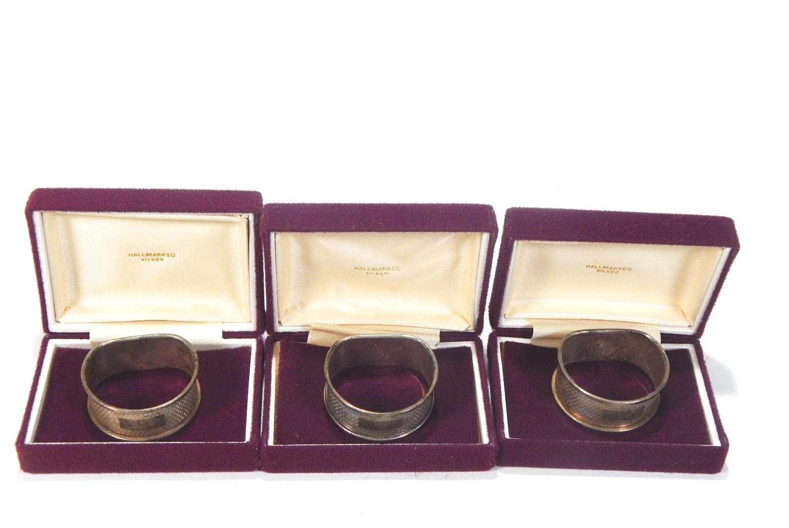 Sterling silver napkin rings with original cases.