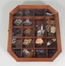 Octagon shaped shadowbox with 18 spaces. Glass front door with a lock on the side.