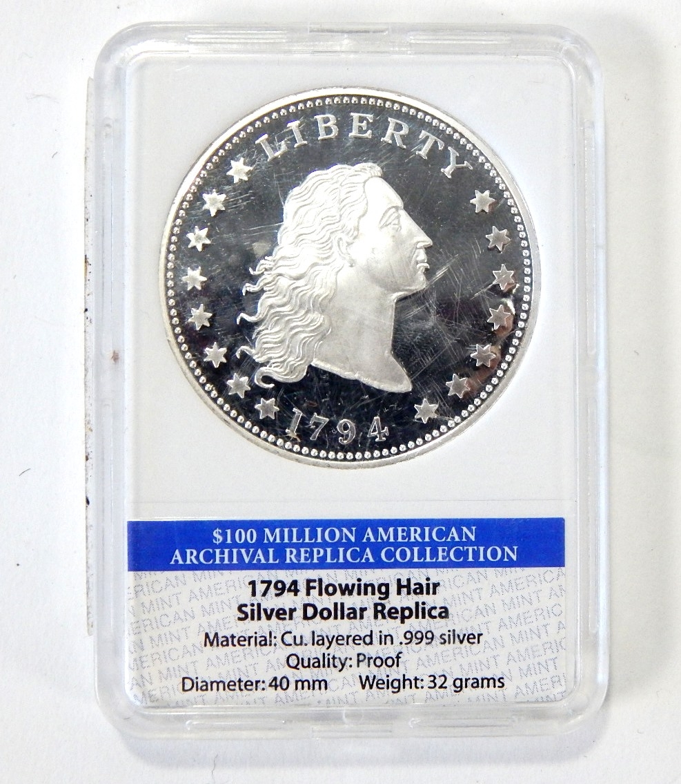 Silver layered proof dollar coin.