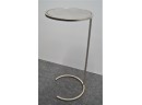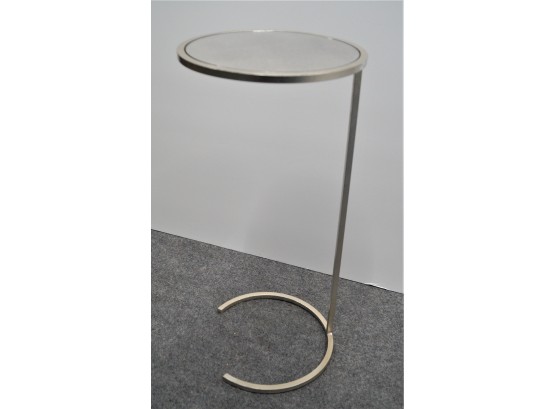 Listed is a small, mirrored top table with a metal base 26"h x 12" diameter on the mirrored top. Condition is very good. See photos for details.