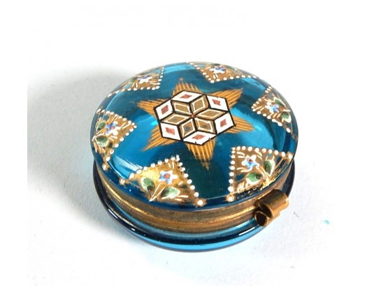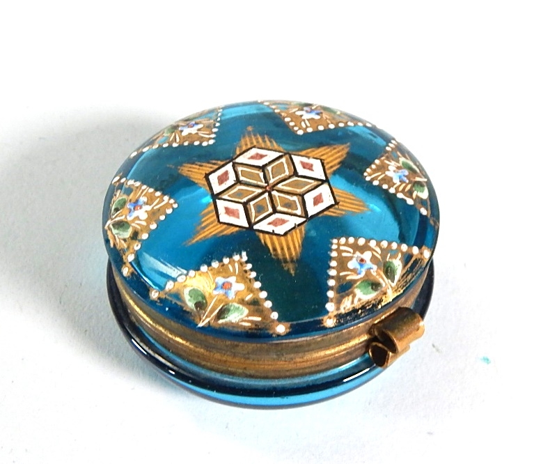 Attractive blue glass trinket box in good condition.