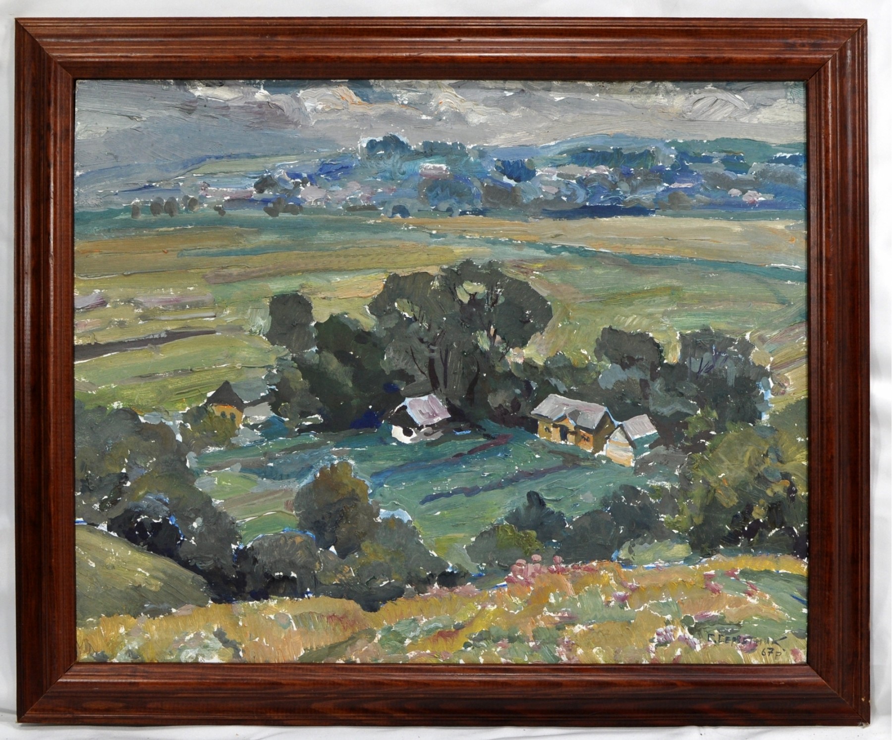 Birds eye village view oil on board by honored artist of Ukraine Stanislav Marianovich Servetnik.