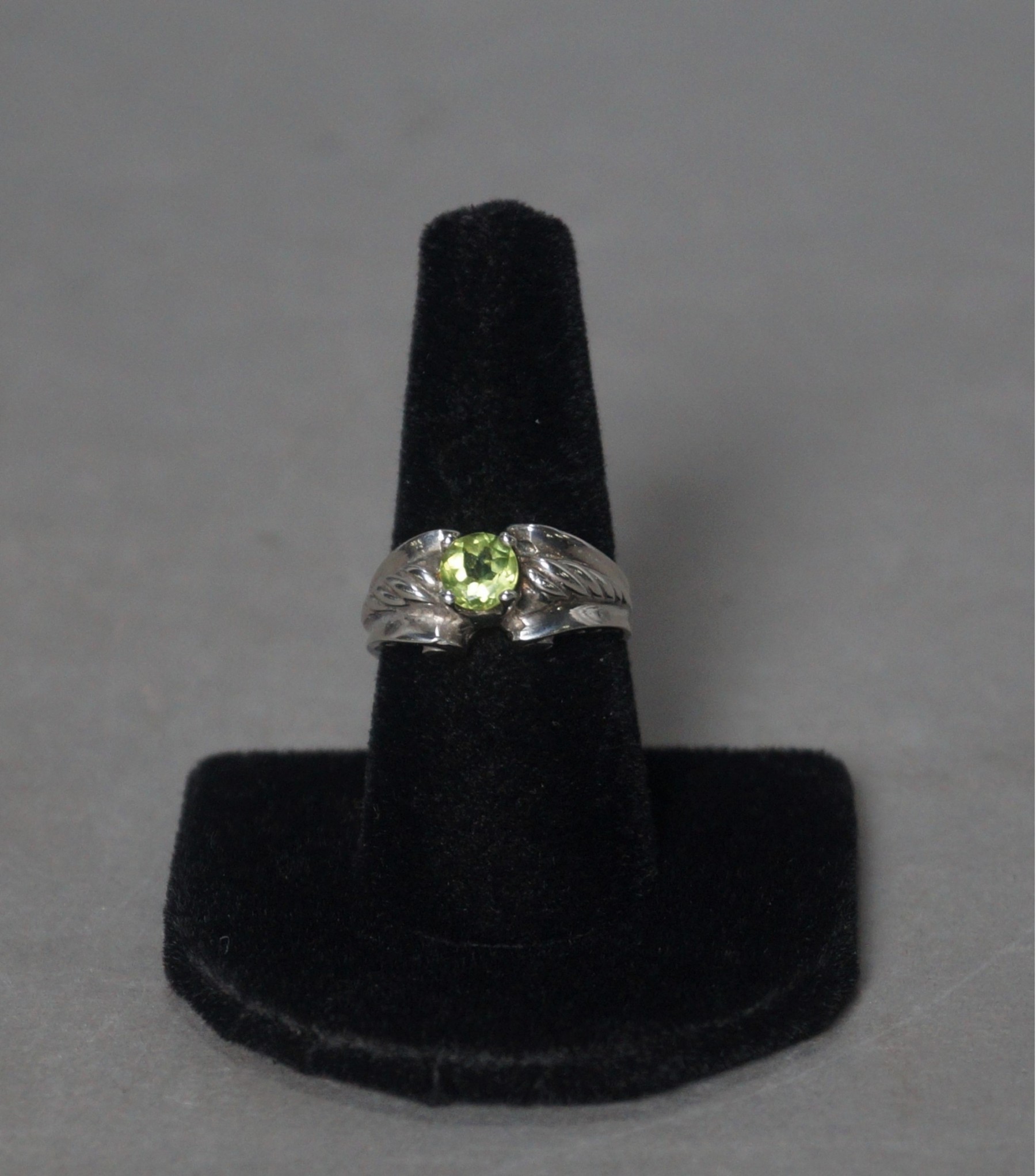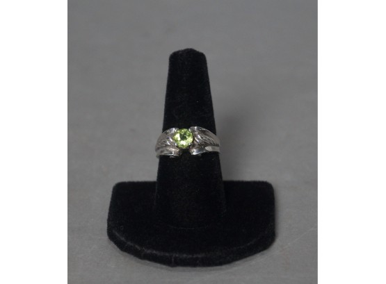 Listed is a lovely sterling silver ring with what appears to be a peridot stone. It is size 7.5 and in great condition. Marked "925".