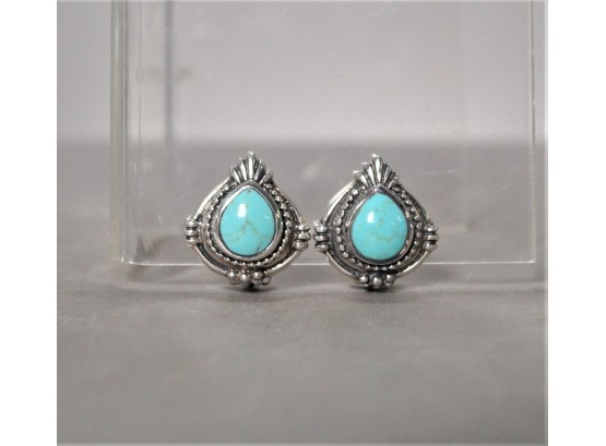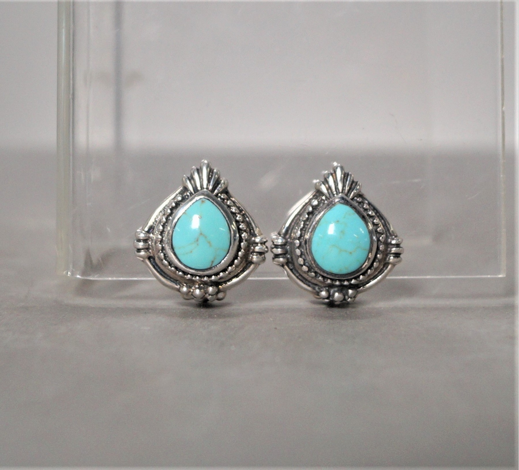 Sterling silver with Turquoise stone clip earrings. Marked 925 and in good used condition.