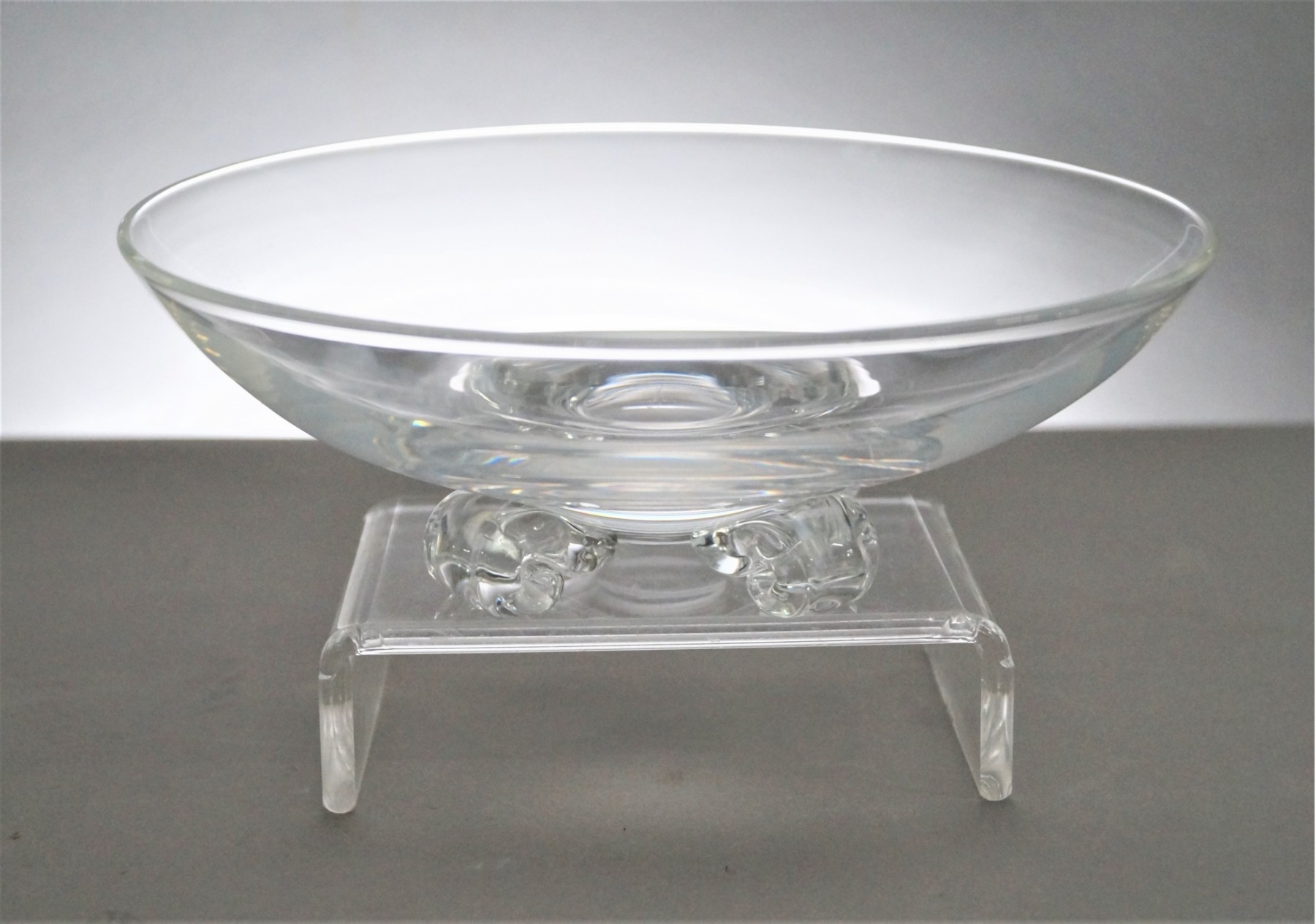 Listed is a beautiful hand blown, signed, crystal bowl by famed glassmaker, Steuben. it measures 8" in diameter and 2.75"h. There is some very minor fogging and very minor scratches, but they do not detract from its beauty. Please see photos for details.