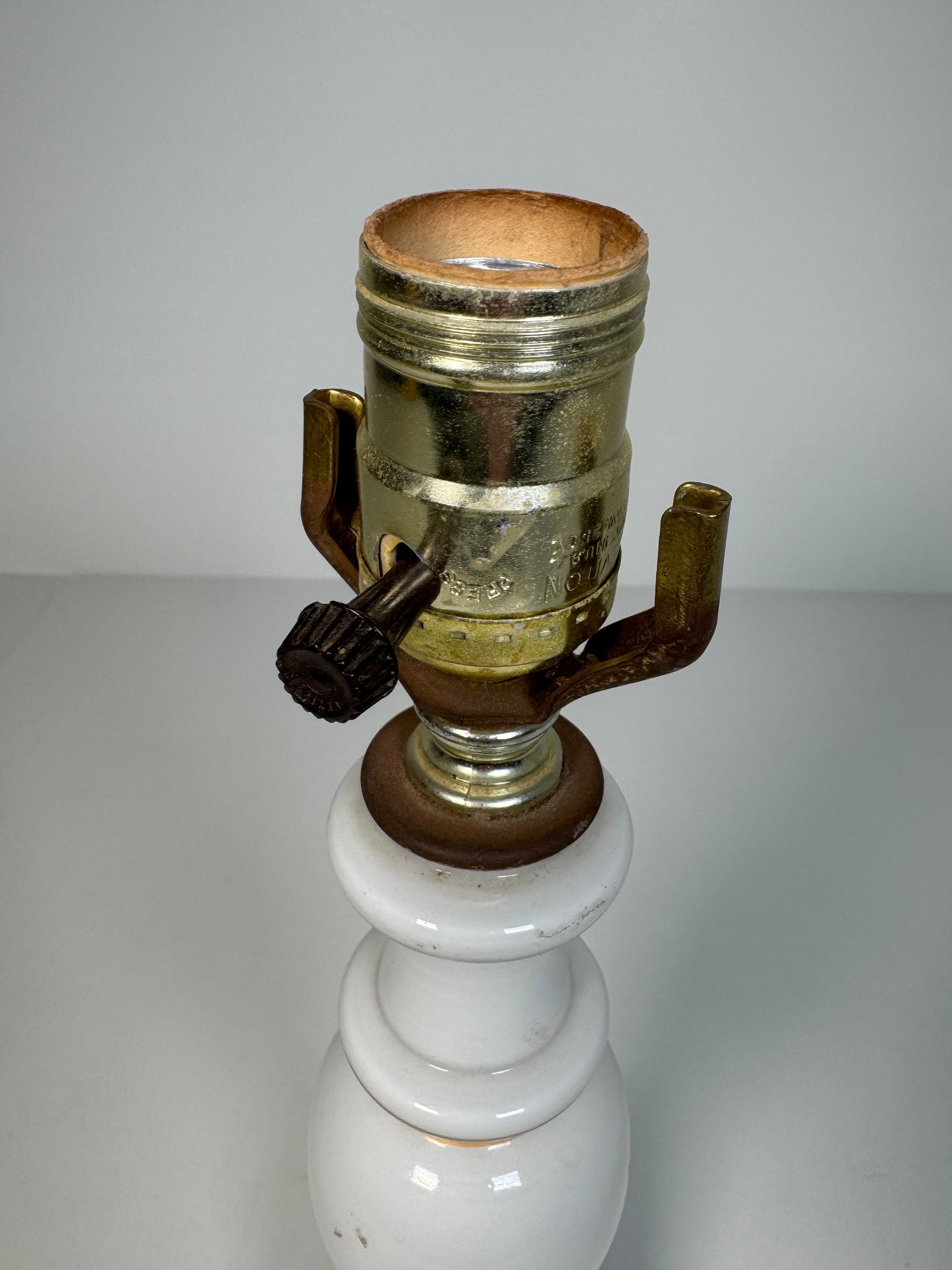 The lamp is in good condition with minor wear consistent with age and use. Shade not included.