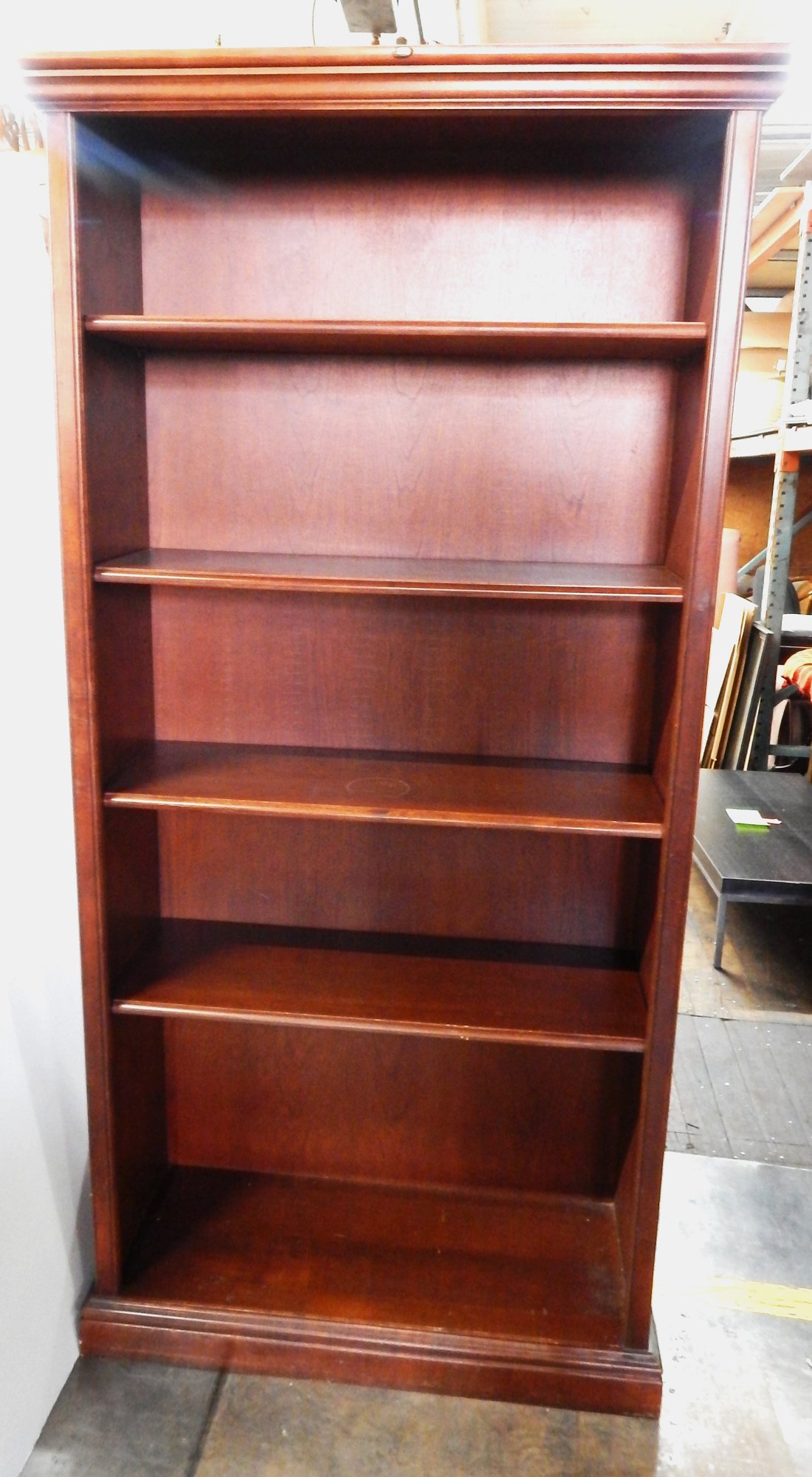 Large bookcase with 4 adjustable shelves measuring 33"w x 12"d x 72"h. Very good condition except for a circular glass stain on one shelf and a small nick on the edge of one shelf both of which are an easy fix. See photos for details.