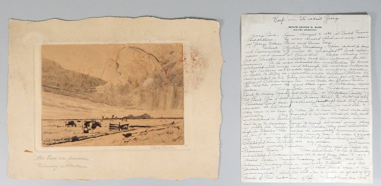 Original etching signed by Theodor Sander with dedication to Mr. Burr.