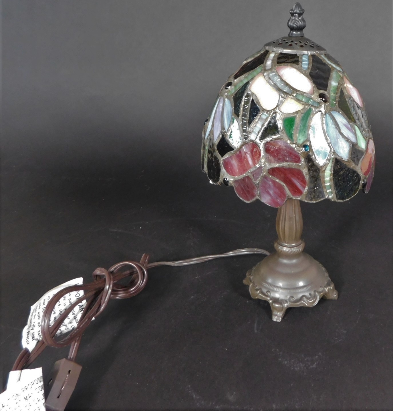 This cute lamp stands 12". Multi-colored shade. Maximum 25 watt bulb. Type "B"