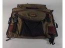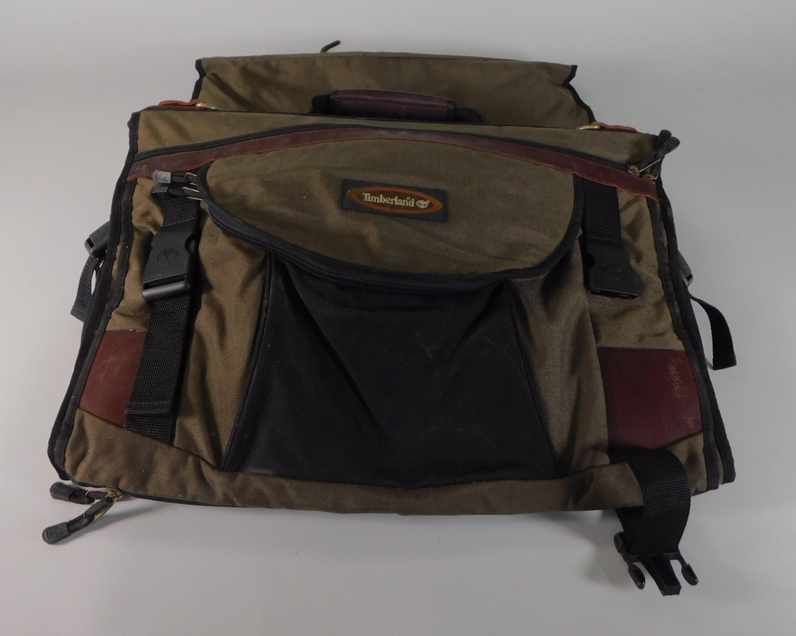 This bag can fit everything you need to travel. Several zipper compartments. Hanger for hanging on the plane. Leather accents. Clips for folding. Brown color. Great piece!!