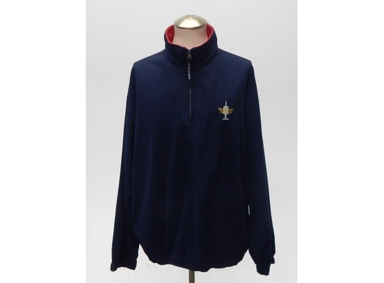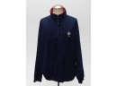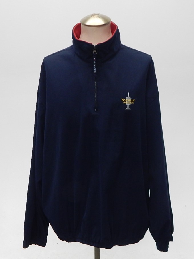 Navy blue with red inside the collar. Long sleeve, 1/4 zipper. This jacket is from the Northeast Amateur at Wannamoisett Country Club.