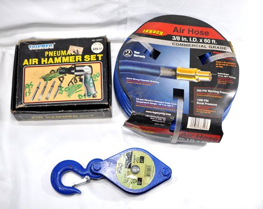 Tool Lot: New Pulley Block, New Air Hose, Air Hummer Set.