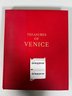 This hardcover art book, titled Treasures of Venice, features a collection of photographs and descriptions of Venice's rich historical artworks, architecture, and sculptures. With a bold red cover and gilded title, it offers a window into Venetian cultural history. The interior includes color and black-and-white images, detailing famous mosaics, paintings, and other significant landmarks.