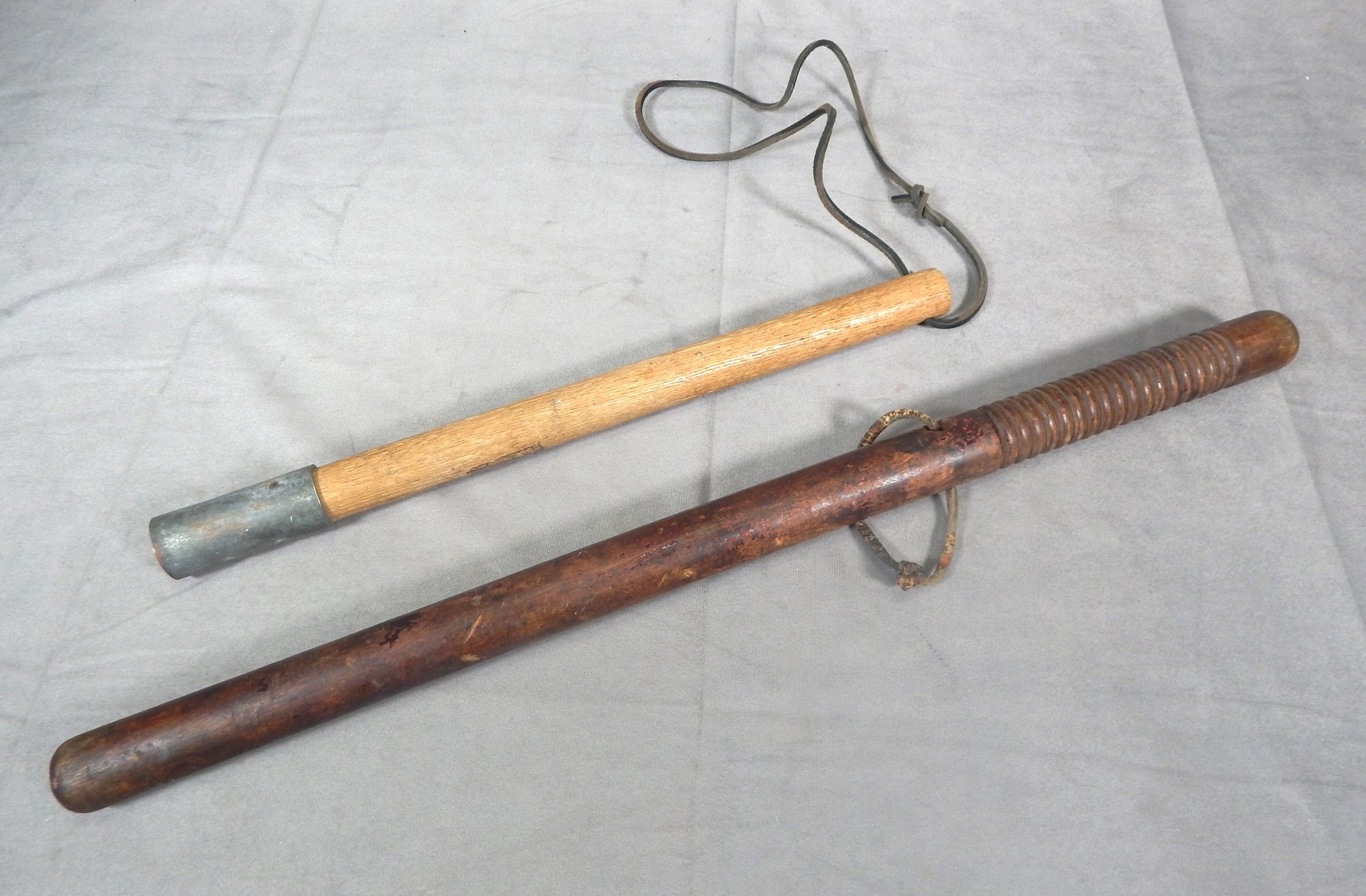 Dark wood 24" baton night stick with vintage leather handle. VG used condition.