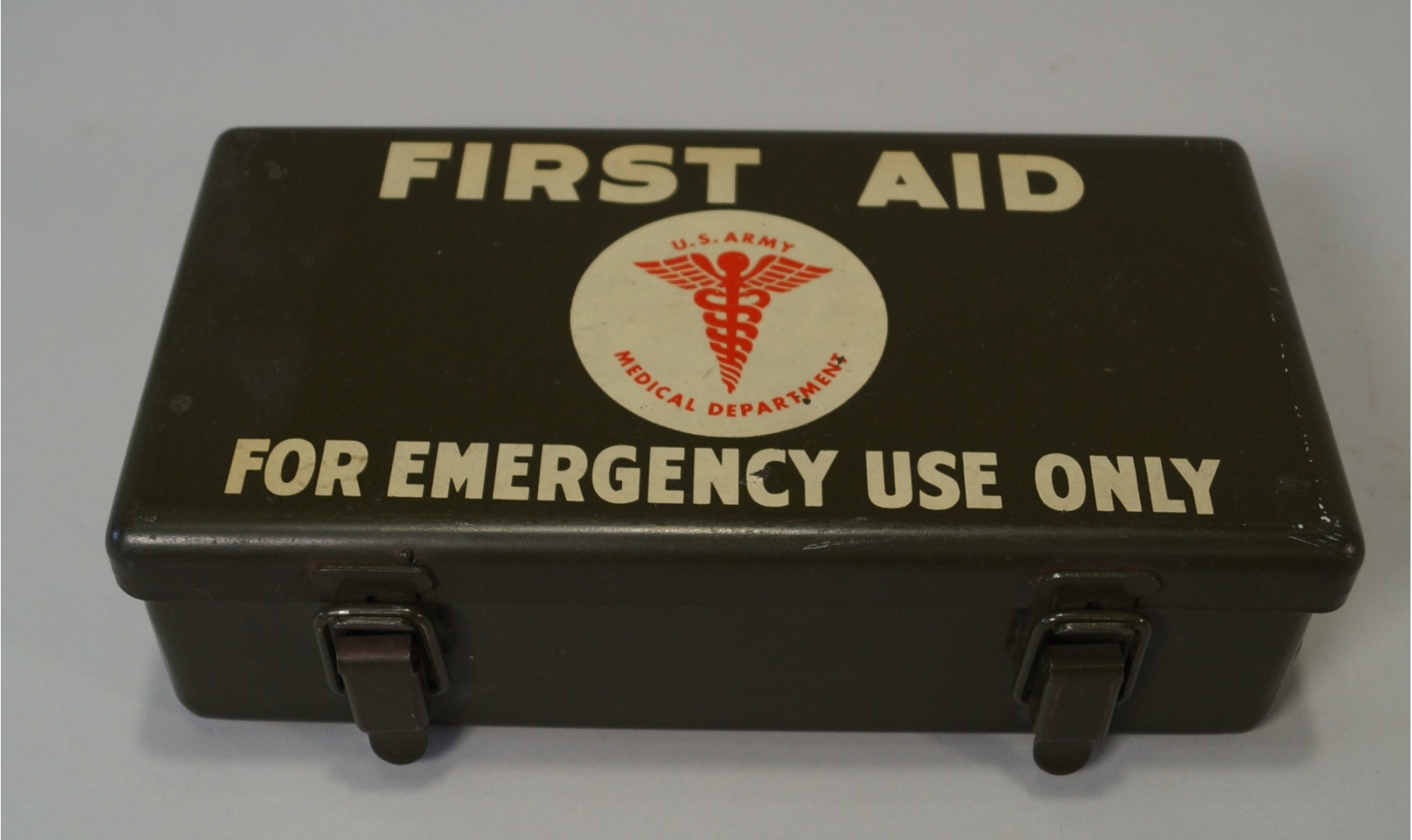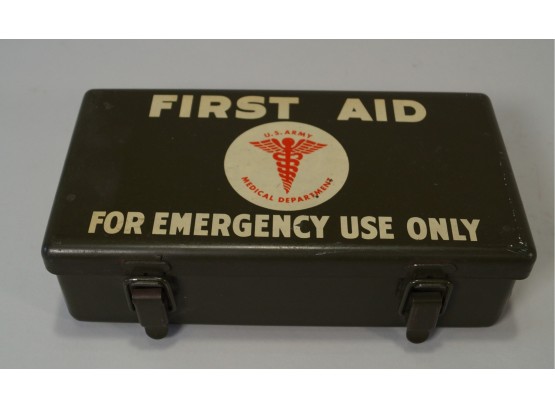 Great metal box that contained a First Aid Kit for the US Army. What we have inside is a Hand Book of First Aid by Johnson & Johnson. Copyright 1903, and 1905.