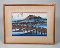 Vintage Utagawa Hiroshige Harima Province Maiko beach framed woodblock.