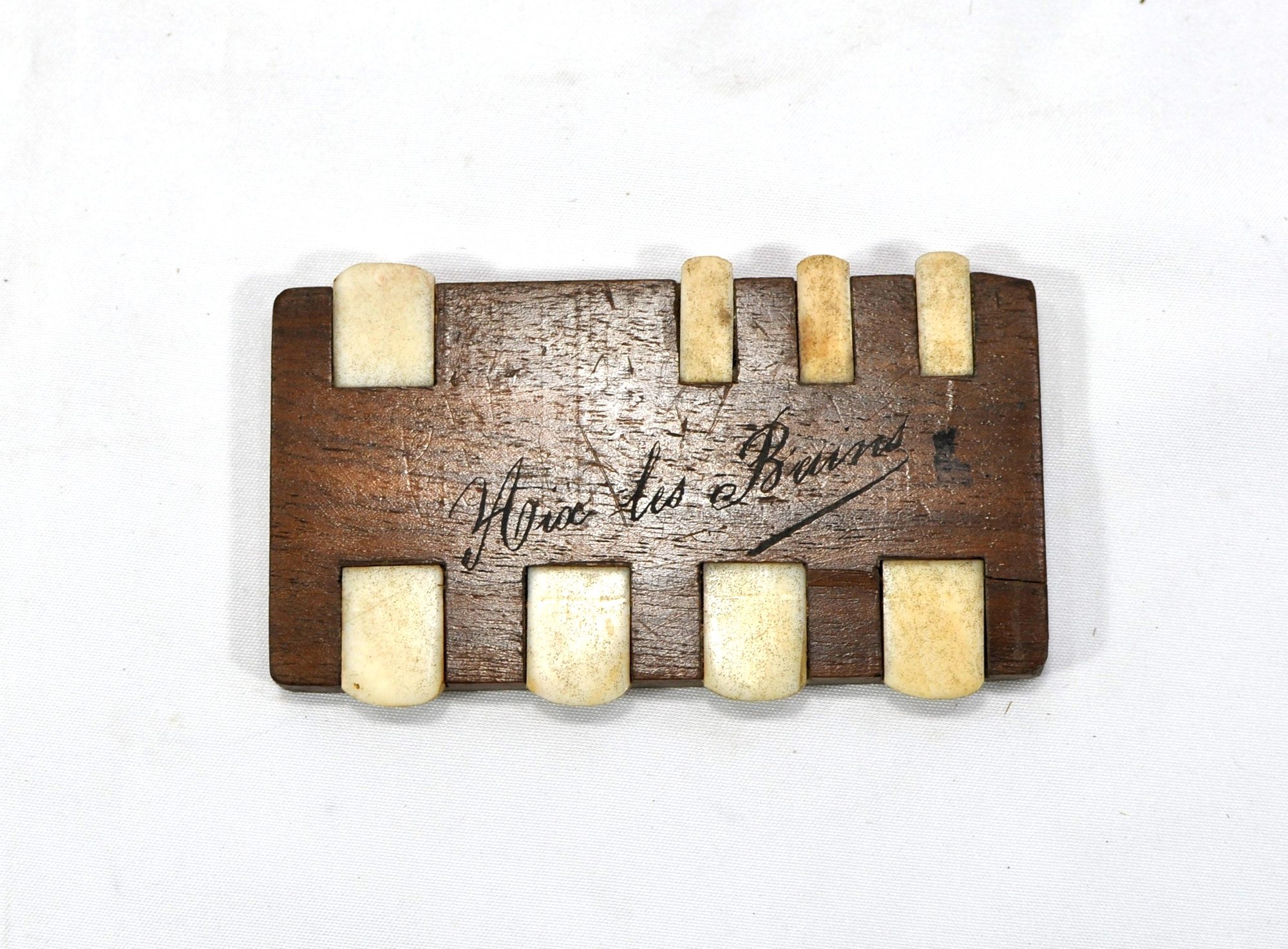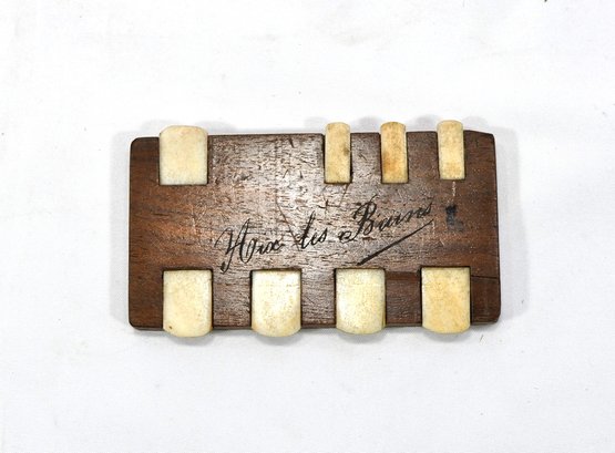 Charming antique bridge game counter piece with etched inscription.