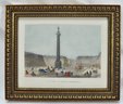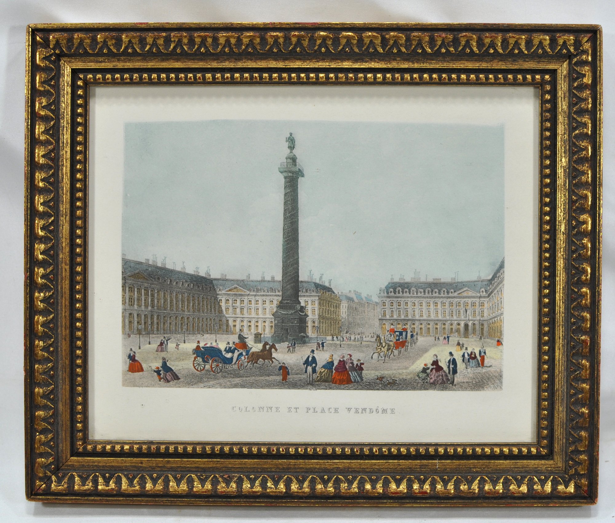Colored print framed under glass.