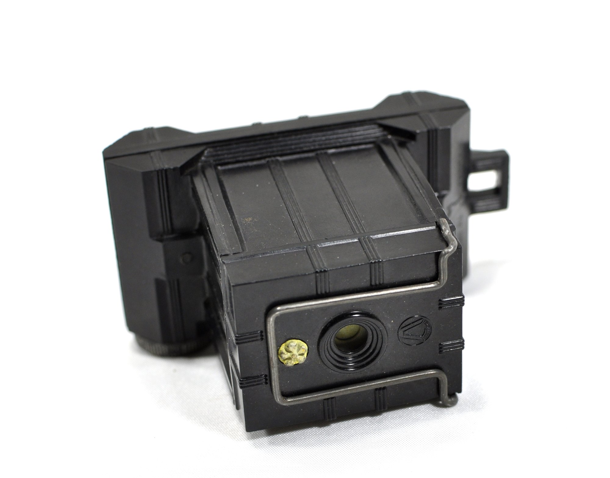 It has a wire-frame finder with the rear sight moulded onto the body and the front frame folding onto the lens barrel. Original cost was only $0.39, and it used Universal's no.00 roll film at $0.10 per roll - leading it to sell over three million in three years.