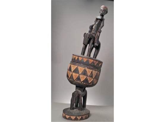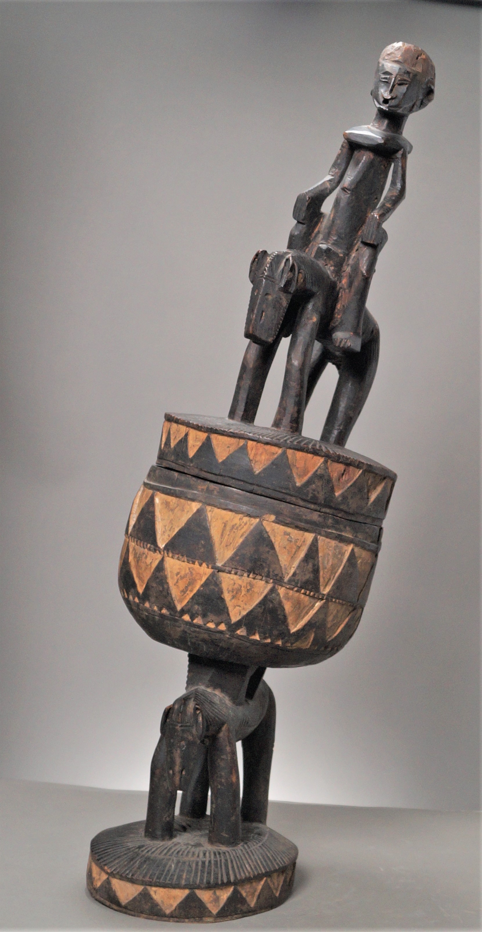 Large figurative tribal bowl with horse and rider. Hand carved and in good used condition.