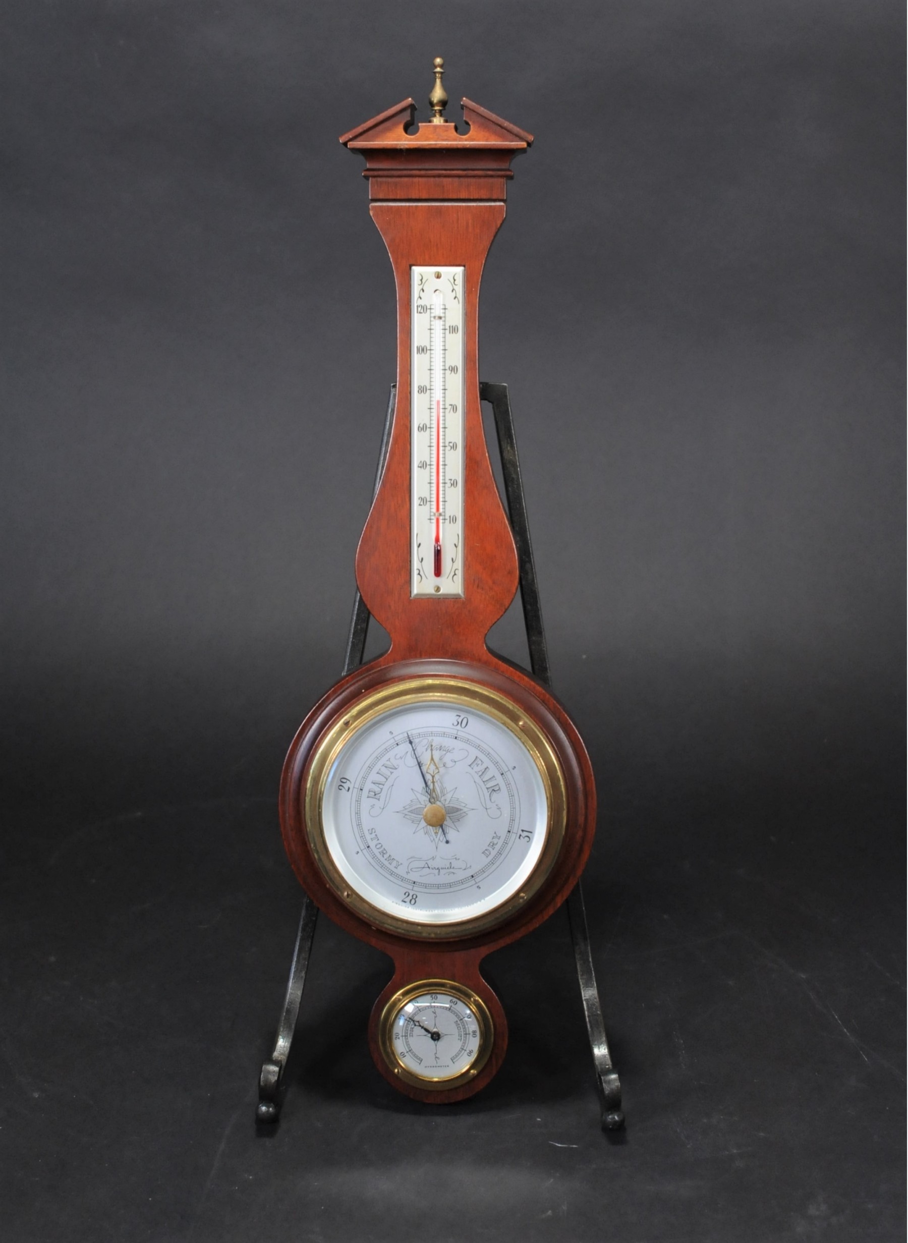 Listed is a mid-century banjo style Airguide barometer. It appears to be in working order. It measures 20"h x 6.5"w at widest point. In good vintage condition.