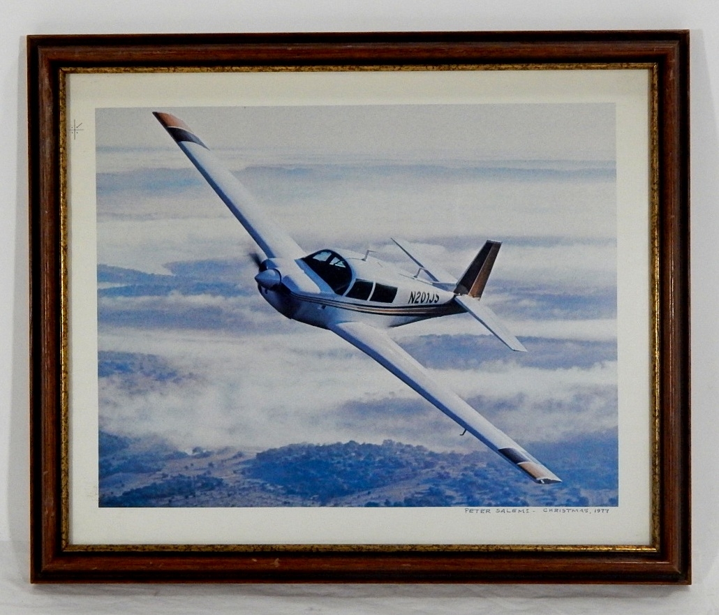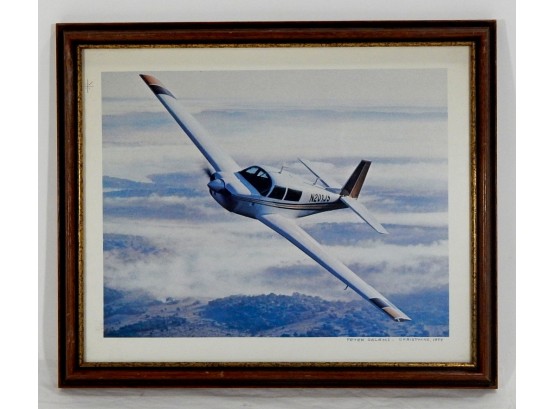 Vintage airplane print, wood frame with glass.