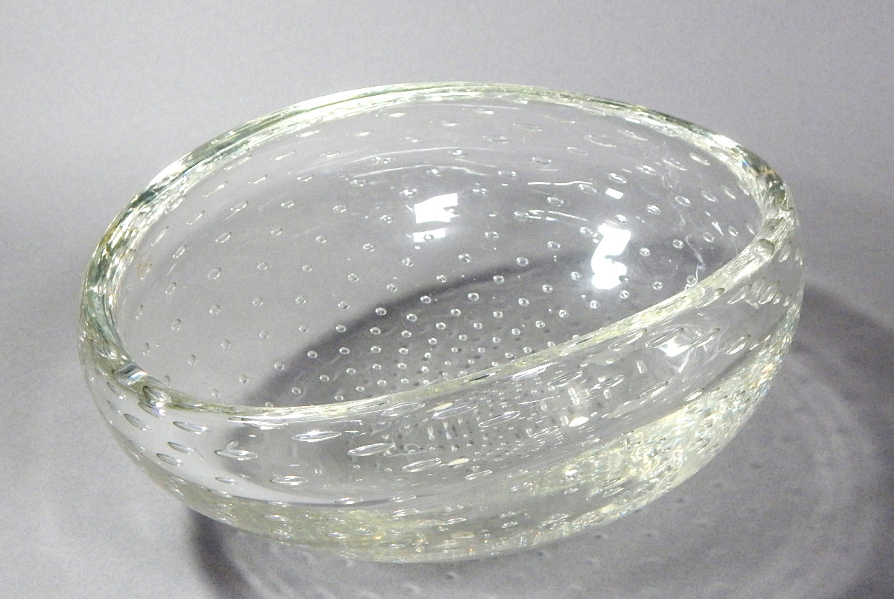 Art Glass bowl centerpiece - controlled bubble internal technique .