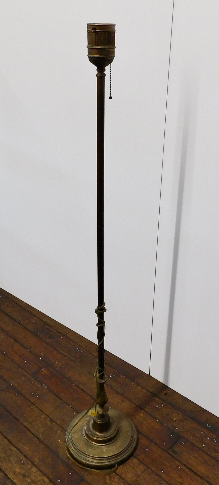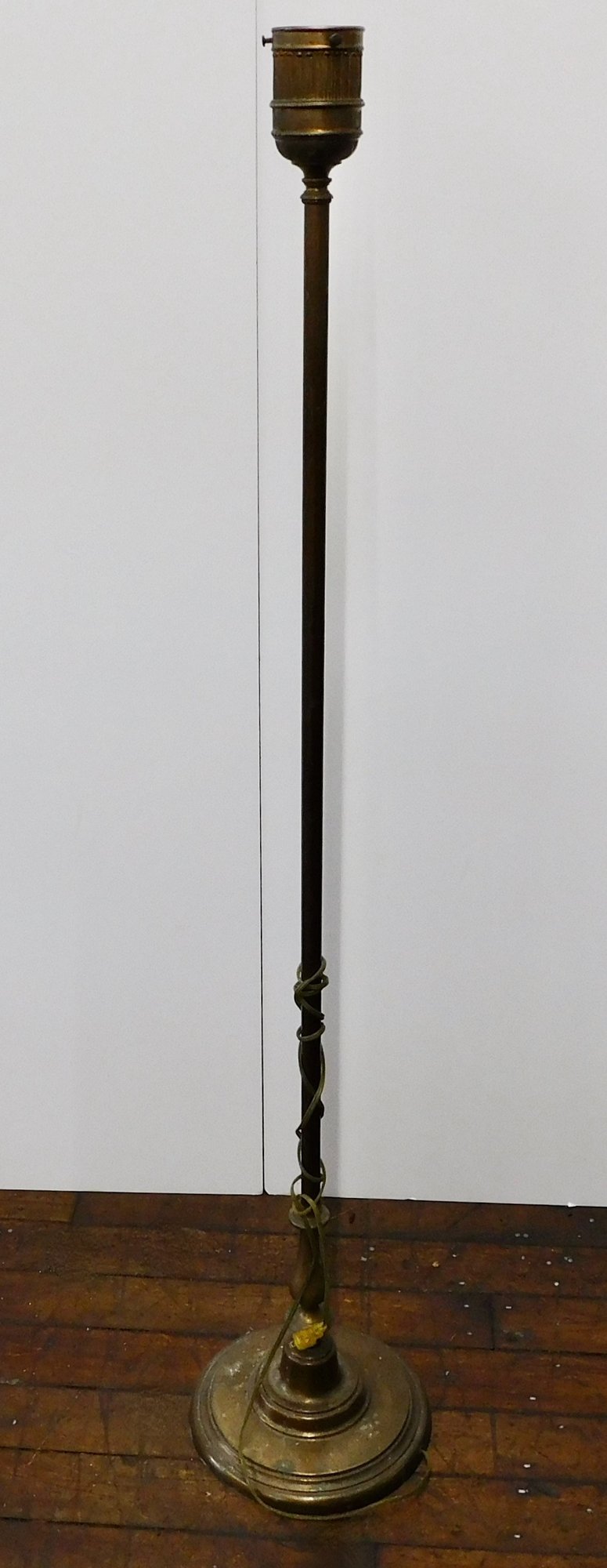 A vintage brass floor lamp with an overall height of 52.5 inches. The lamp features a classic design, including a circular weighted base for stability, a slender column, and a simple lamp holder.